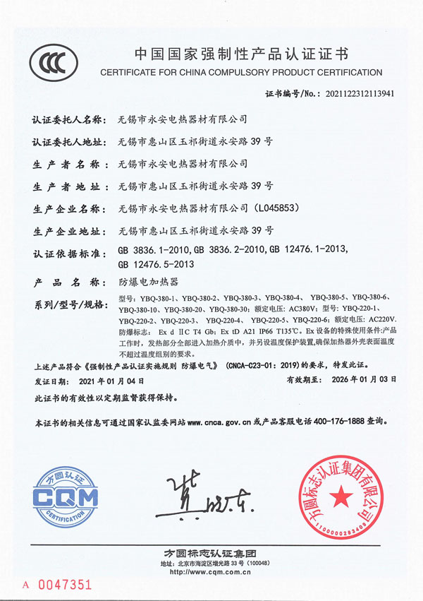 CCC证书-防爆电加热器